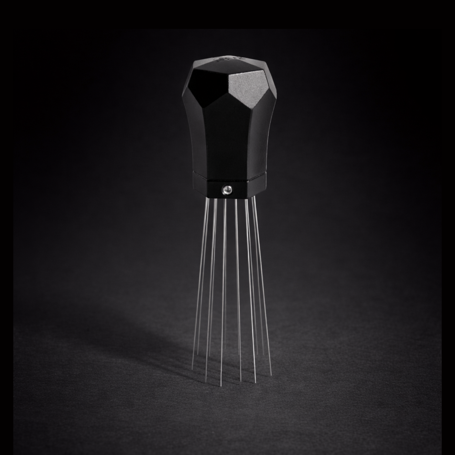 Featuring ultra-fine stainless-steel needles and our iconic nocturnal design, the NYTE WDT Tool breaks up clumps and distributes grounds with effortless accuracy. Every stir ensures a lighter, airier, and perfectly even coffee bed.